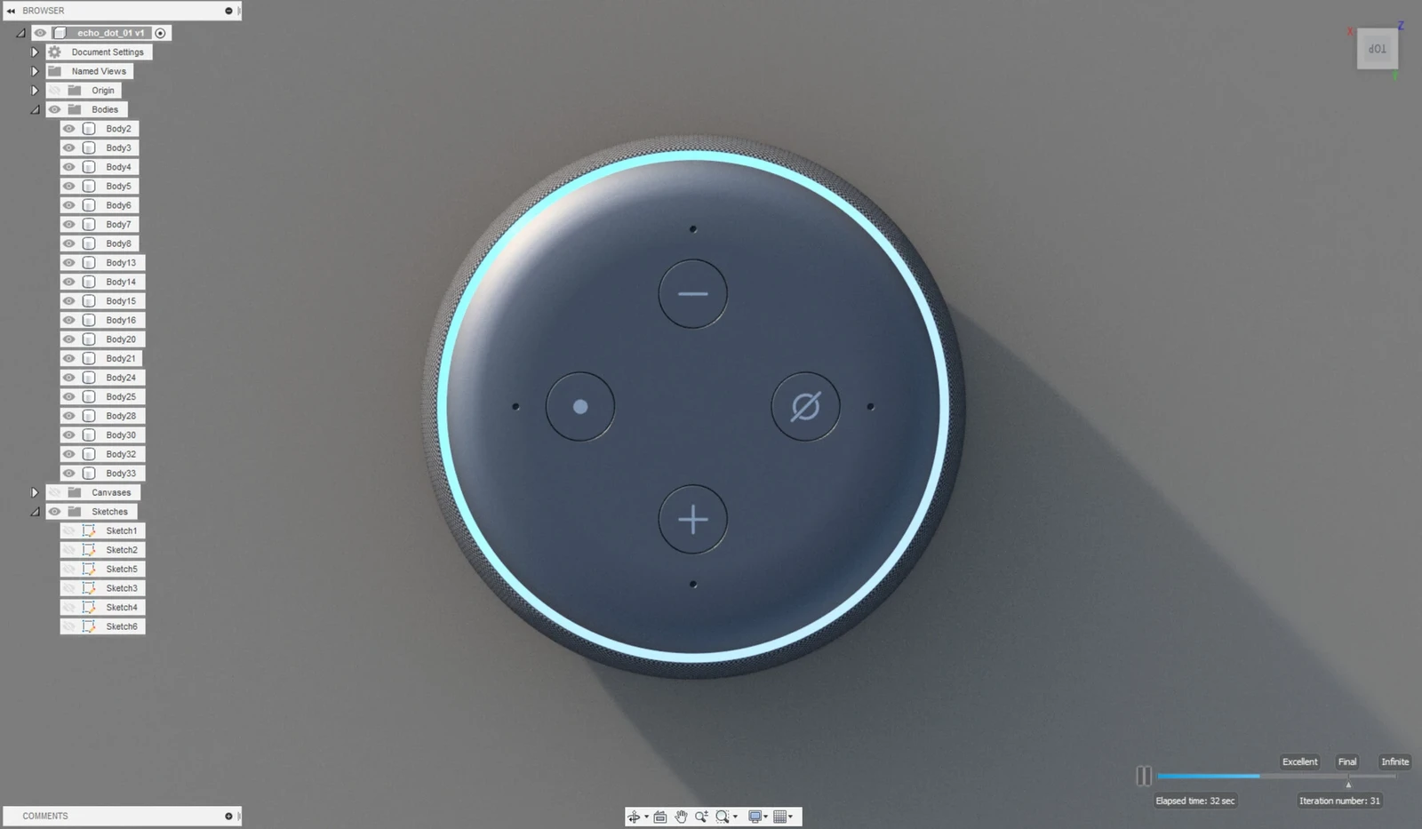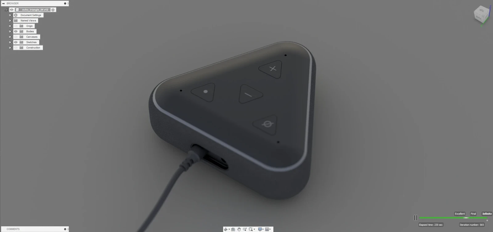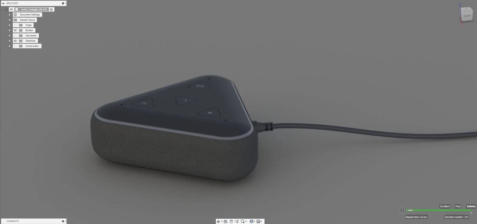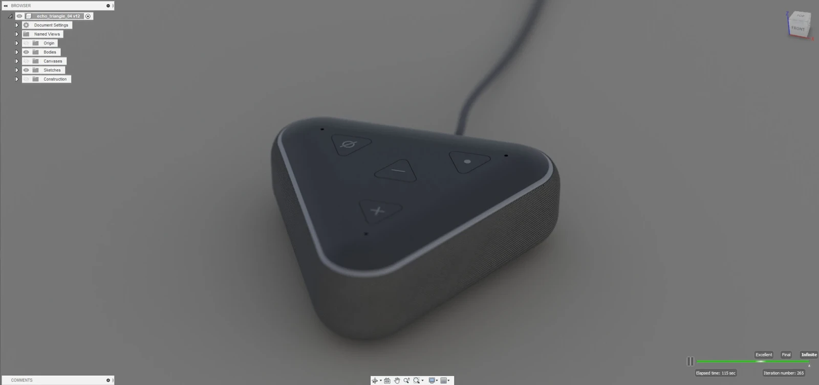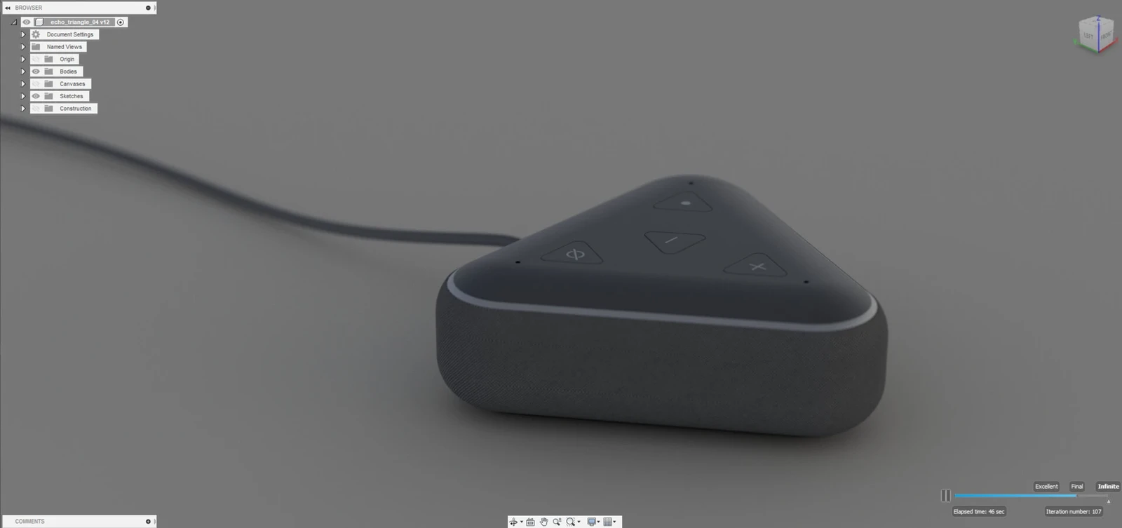 I was exploring a triangular reinterpretation of the Echo Dot, experimenting with form while maintaining its familiar identity.