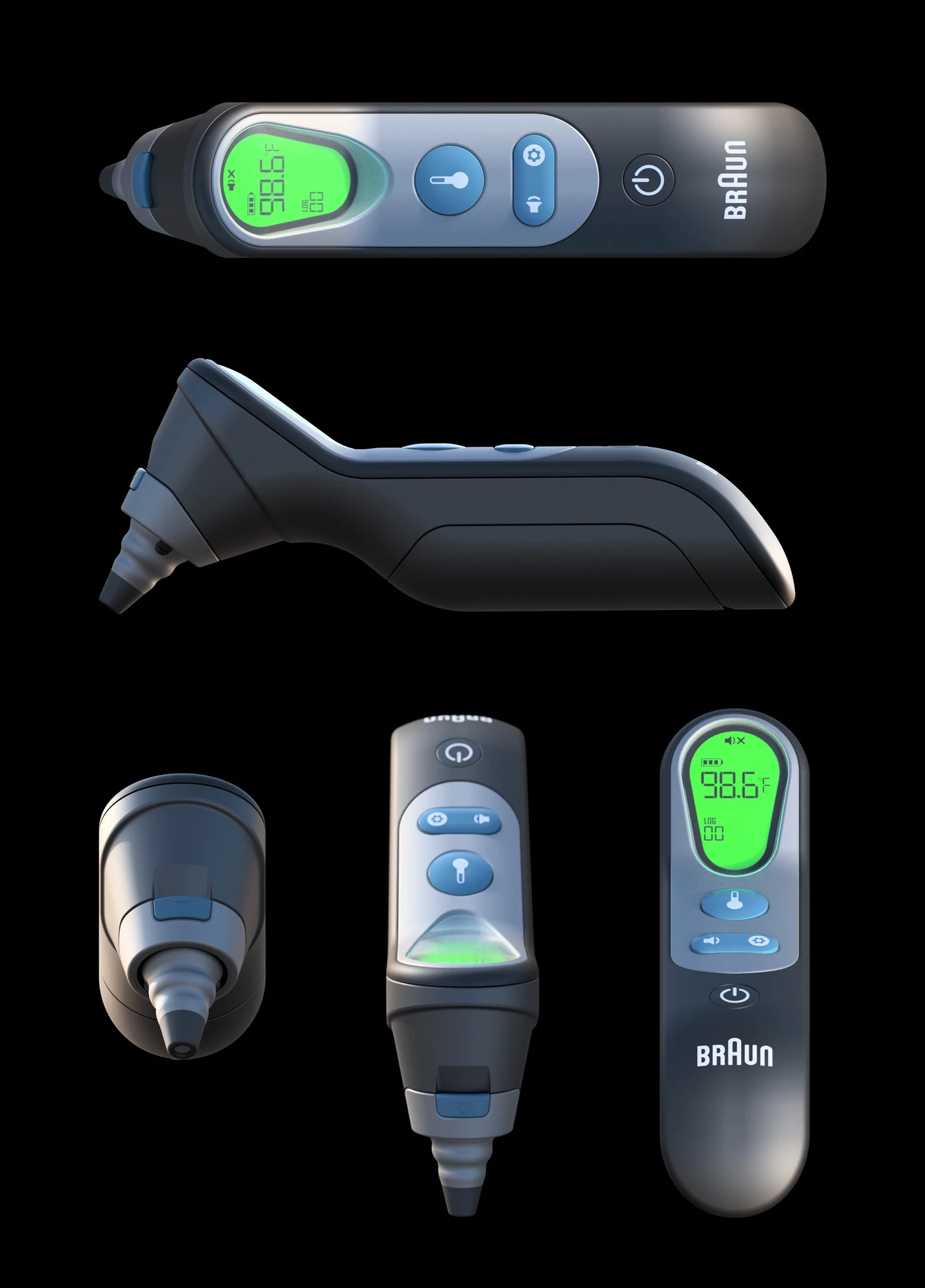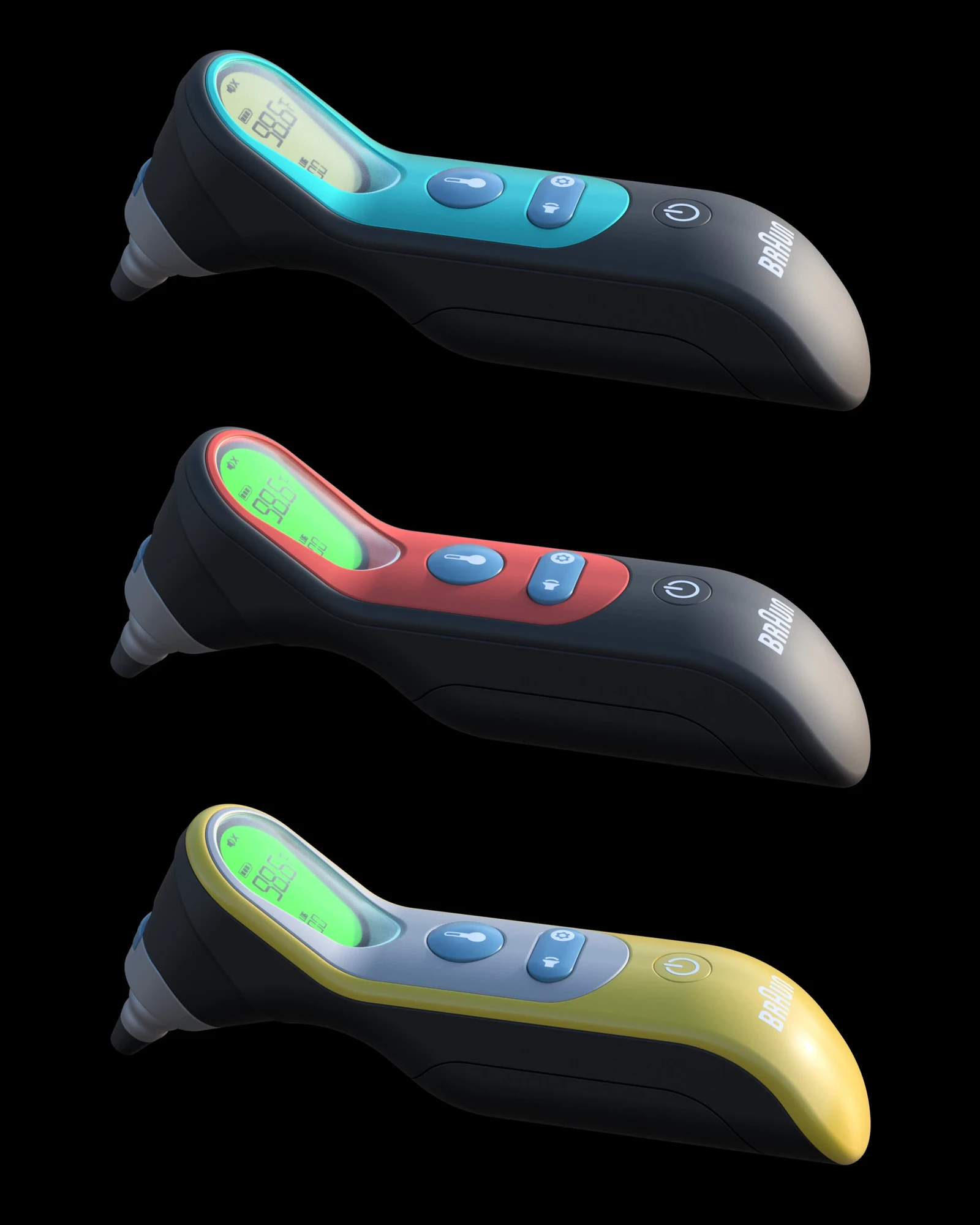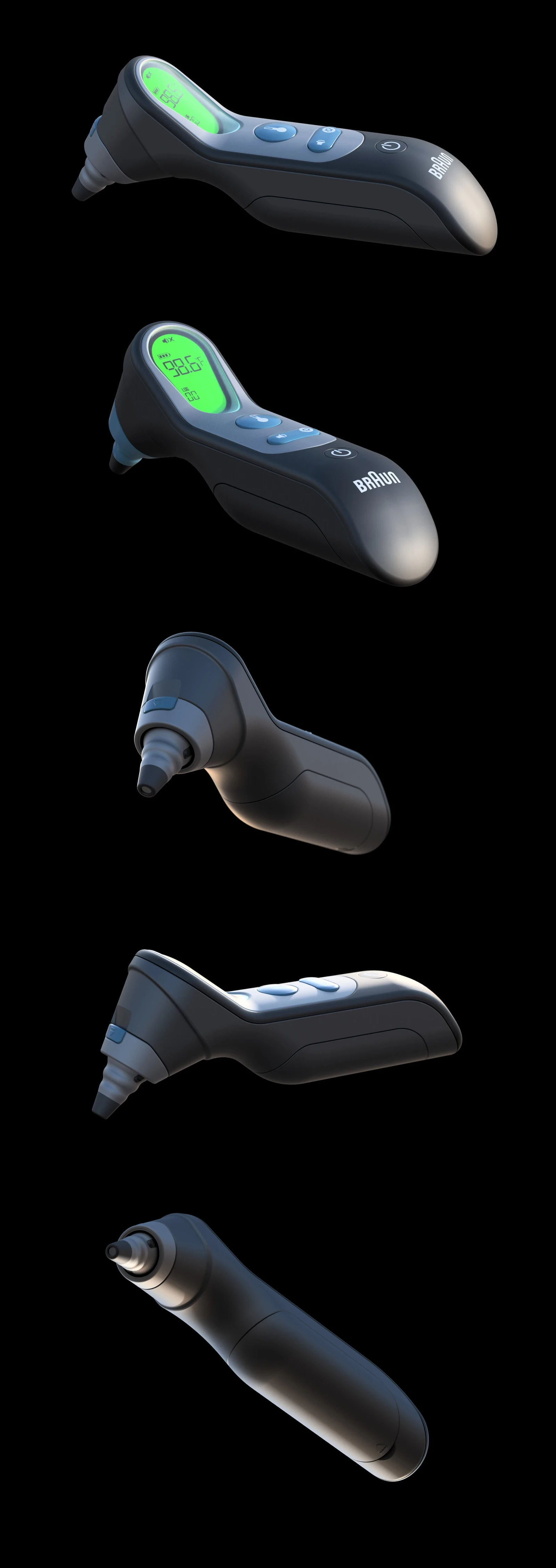 This is my personal take on the Braun thermometer design. I redesigned the main body by introducing a forward tilt to improve grip ergonomics, viewing angle, and the readability of on-body markings. The redesign focuses on functional clarity, user comfort, and ease of use while preserving the product’s core identity. Designed and rendered in Fusion 360.